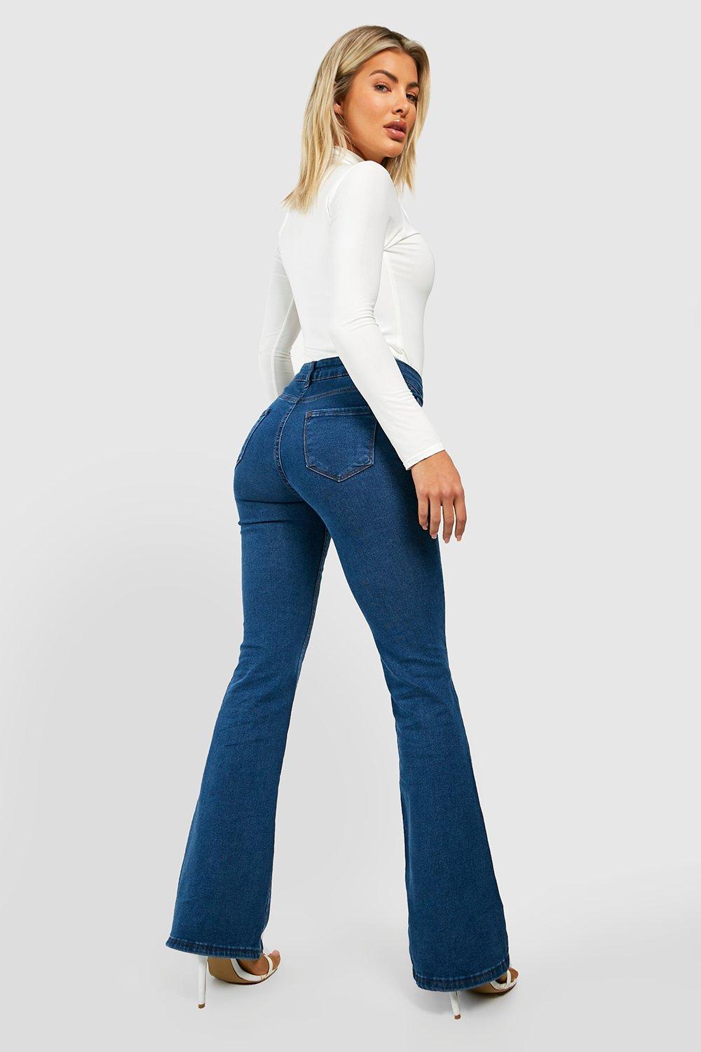 Flare Pants Women Long Denim Pants Skinny Flared High Waist Casual Very well made.