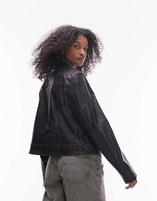 Topshop faux leather slim fit washed jacket in dark brown Very well made.