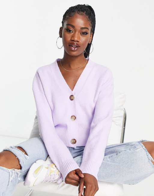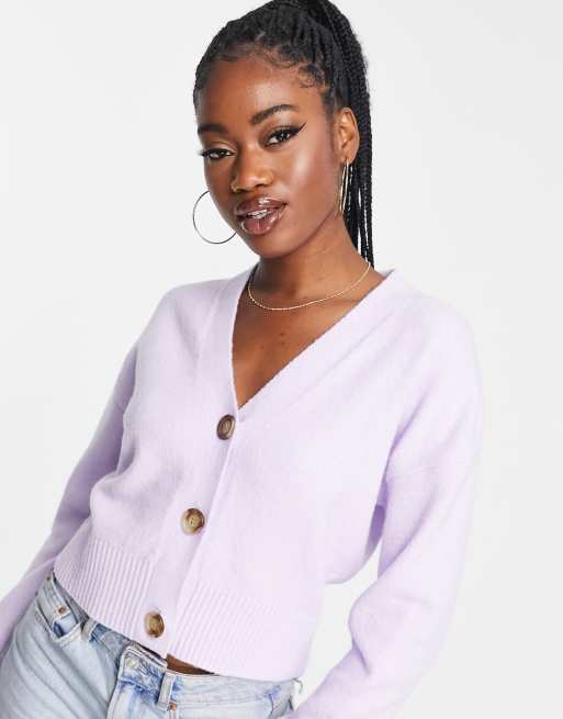 Bershka button down fine knit cropped cardigan in lilac ASOS Very well made.