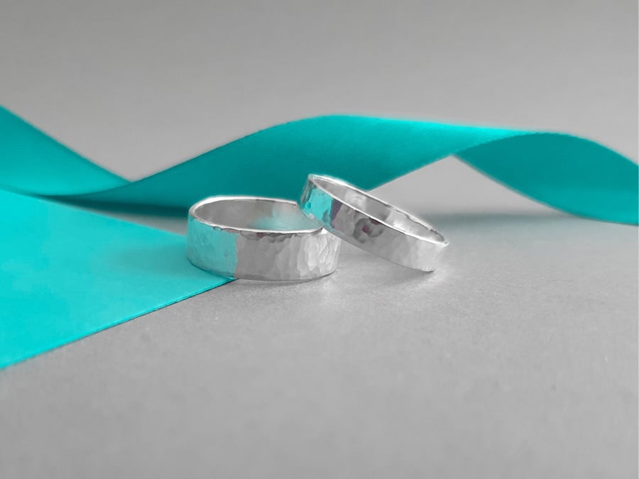 Hammered sterling silver rings Matching personalised ring set for couples Very well made.