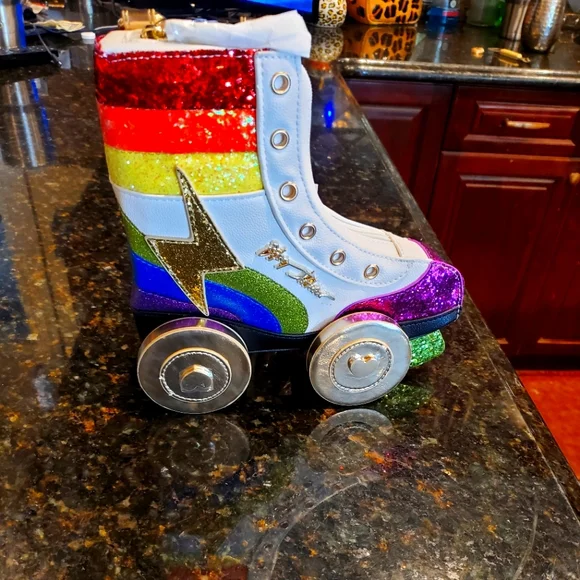 Betsey Johnson Lightning Bolt Rhinestone Roller Skate Top Zip Very well made.