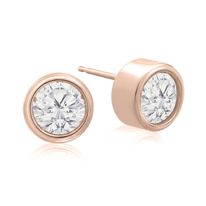 2 Carat Bezel Set Diamond Stud Earrings Crafted In 14 Karat Rose Gold Very well made.