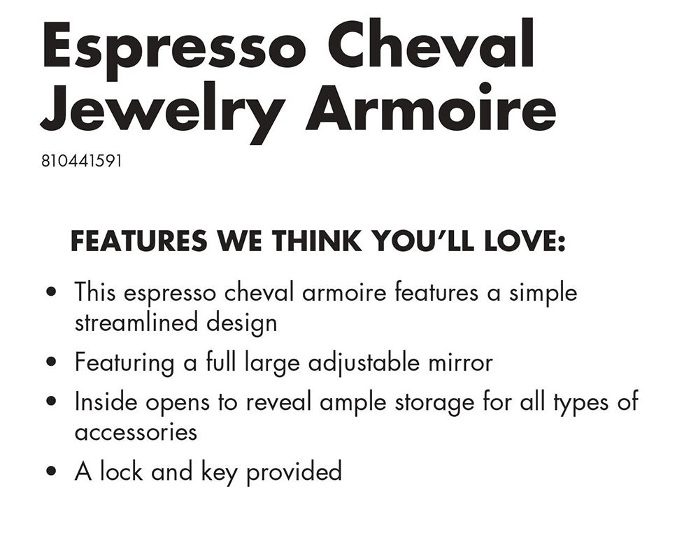 Espresso Cheval Jewelry Armoire Mirror Big Lots Very well made.