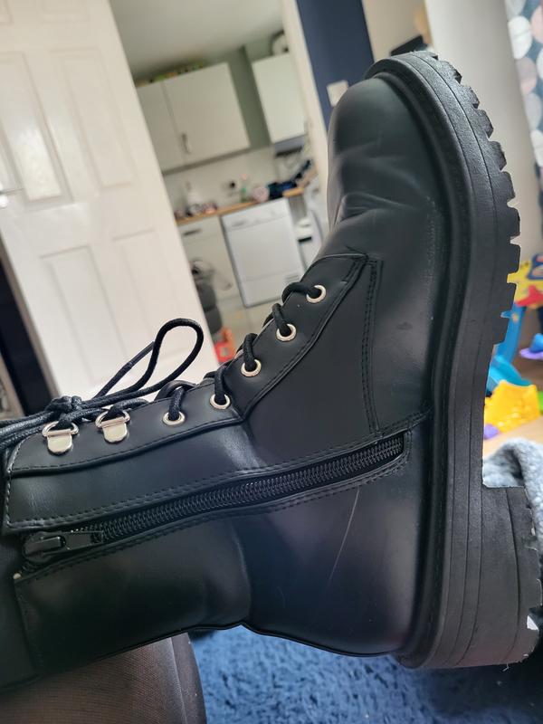 Black Leather Look Lace Up Chunky Biker Boots New Look Very well made.