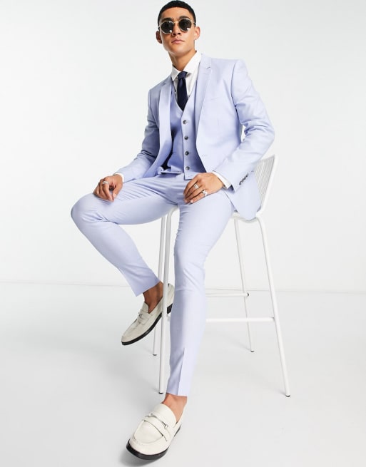 ASOS DESIGN wedding super skinny suit jacket in light blue cross hatch Very well made.
