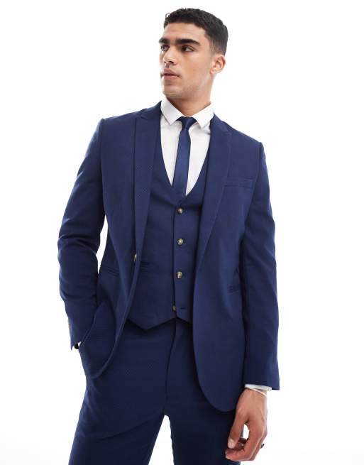ASOS DESIGN wedding skinny suit jacket in micro texture in blue Very well made.