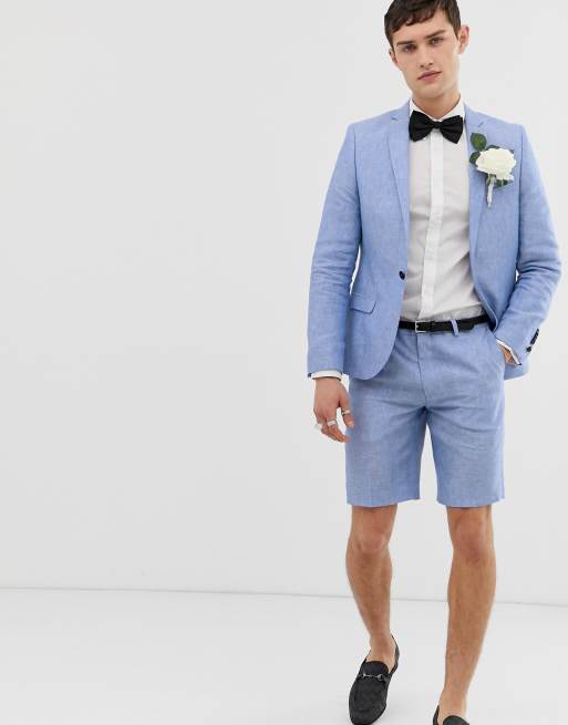 Twisted Tailor super skinny suit shorts in blue linen Very well made.