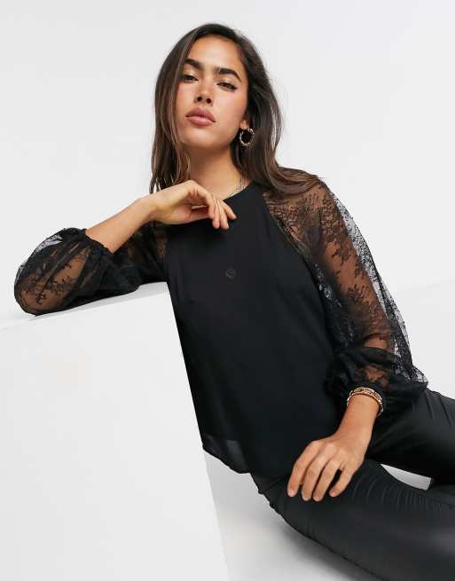 Blusa in pizzo Nero Donna Sisley Very well made.