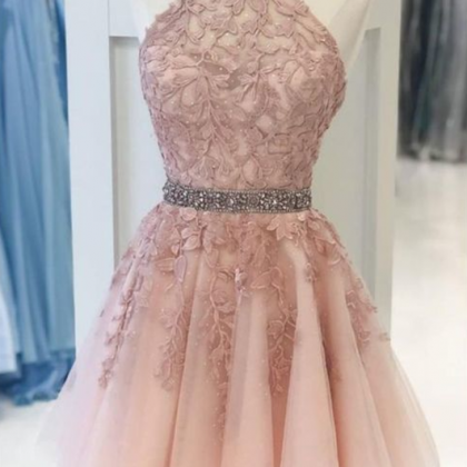 Halter Lace Blush Pink Homecoming Dress beading Semi Formal Very well made.