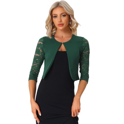 Allegra K Women s 3 4 Lace Trim Sleeves Open Front Bolero Shrug Dark Green X Large Very well made.