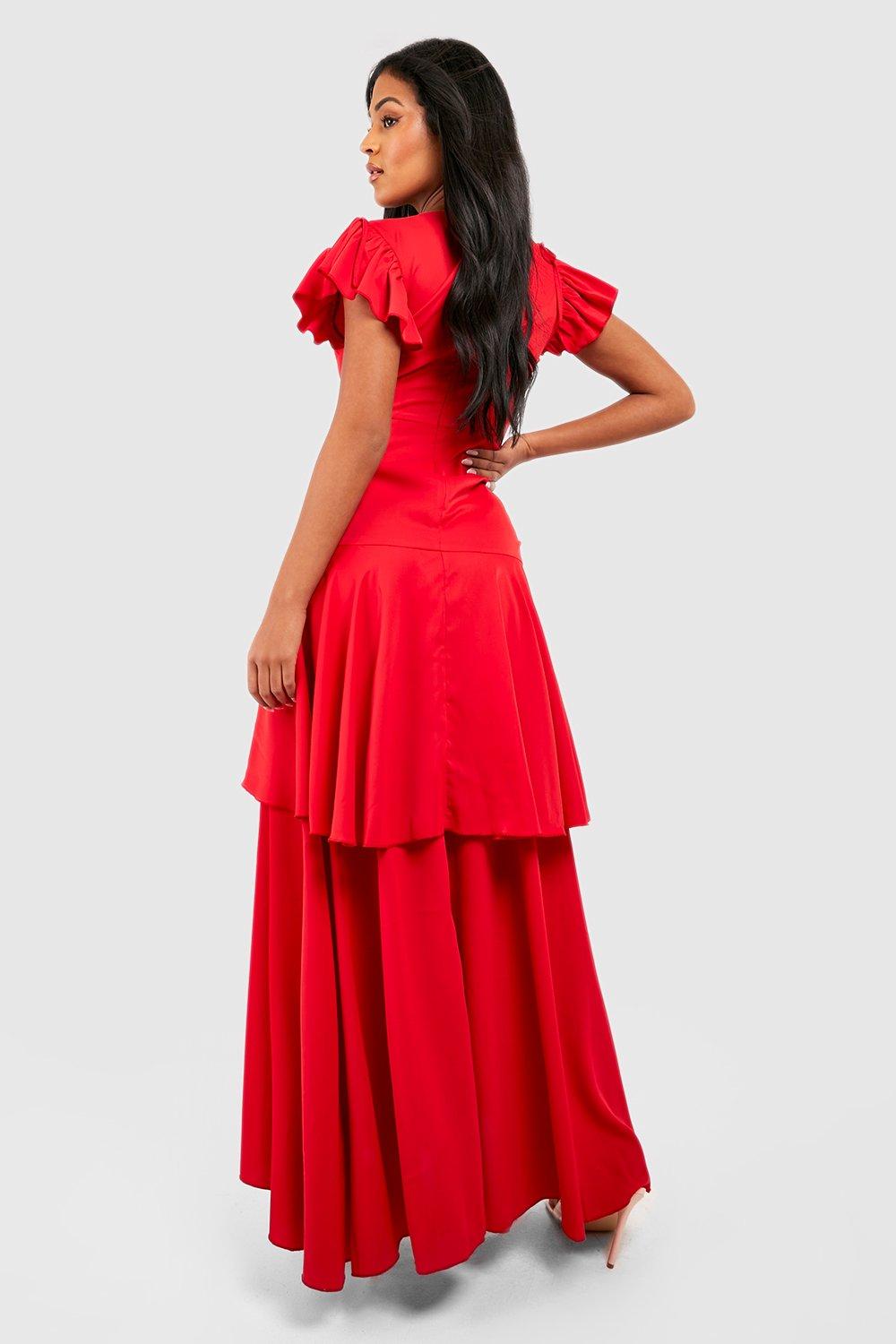 Tall Wrap Ruffle Ruched Angel Sleeve Dress Very well made.