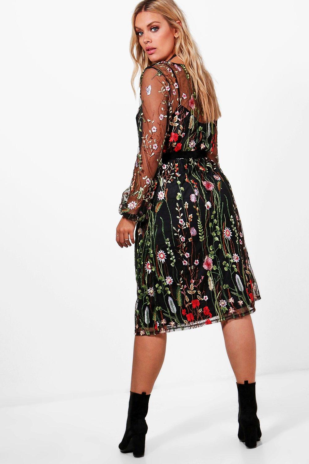 Boohoo Occasion Floral Embroidery Wrap Skater Dress Very well made.