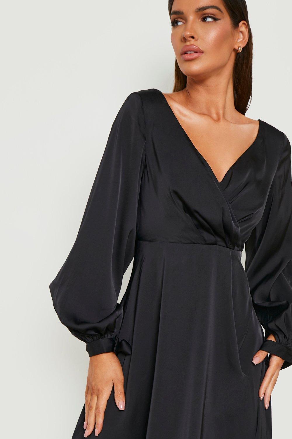 Long Sleeve Satin Frill Wrap Midi Dress Very well made.