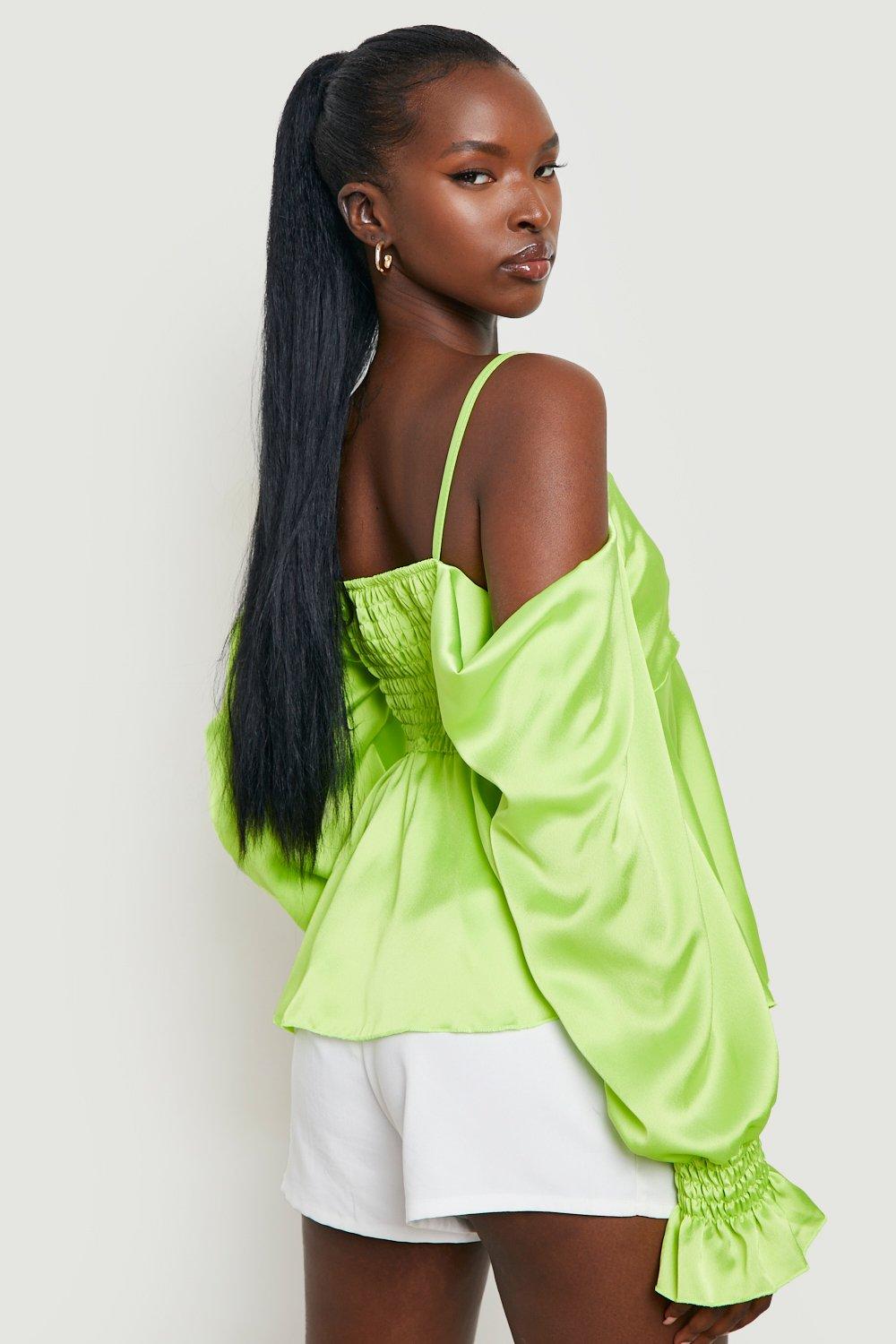 Satin Drape Shoulder Satin Smock Top boohoo Very well made.