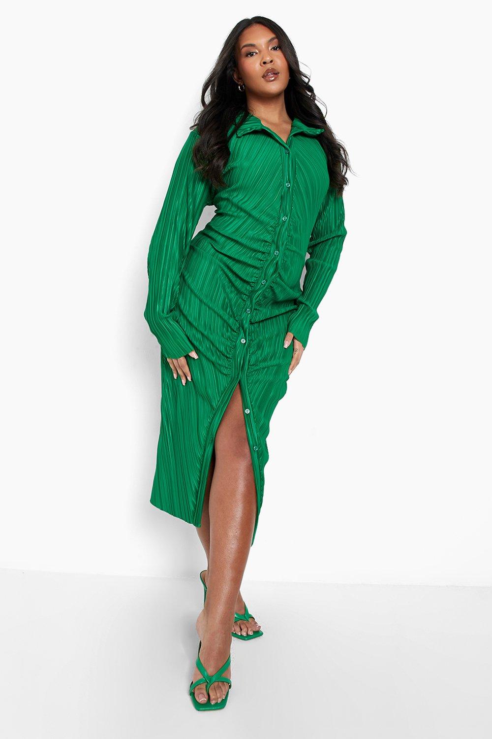 Plus Plisse Midi Ruched Shirt Dress Very well made.