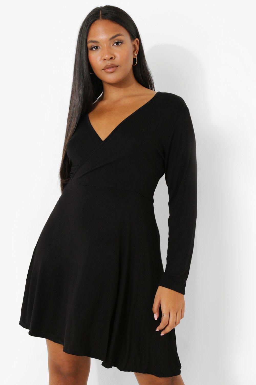 Plus Jersey Knit Wrap Skater Dress boohoo Very well made.