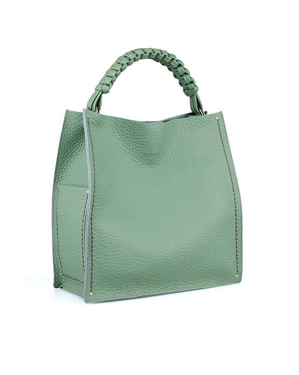 Tote bag color salvia in pelle effetto martellato con manico Very well made.