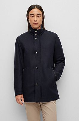 BOSS Wool blend coat in herringbone weave with stand collar Very well made.