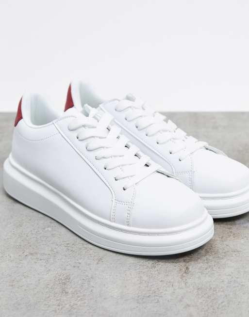 Brave Soul Sneakers met dikke zool en rood contrast in wit Very well made.