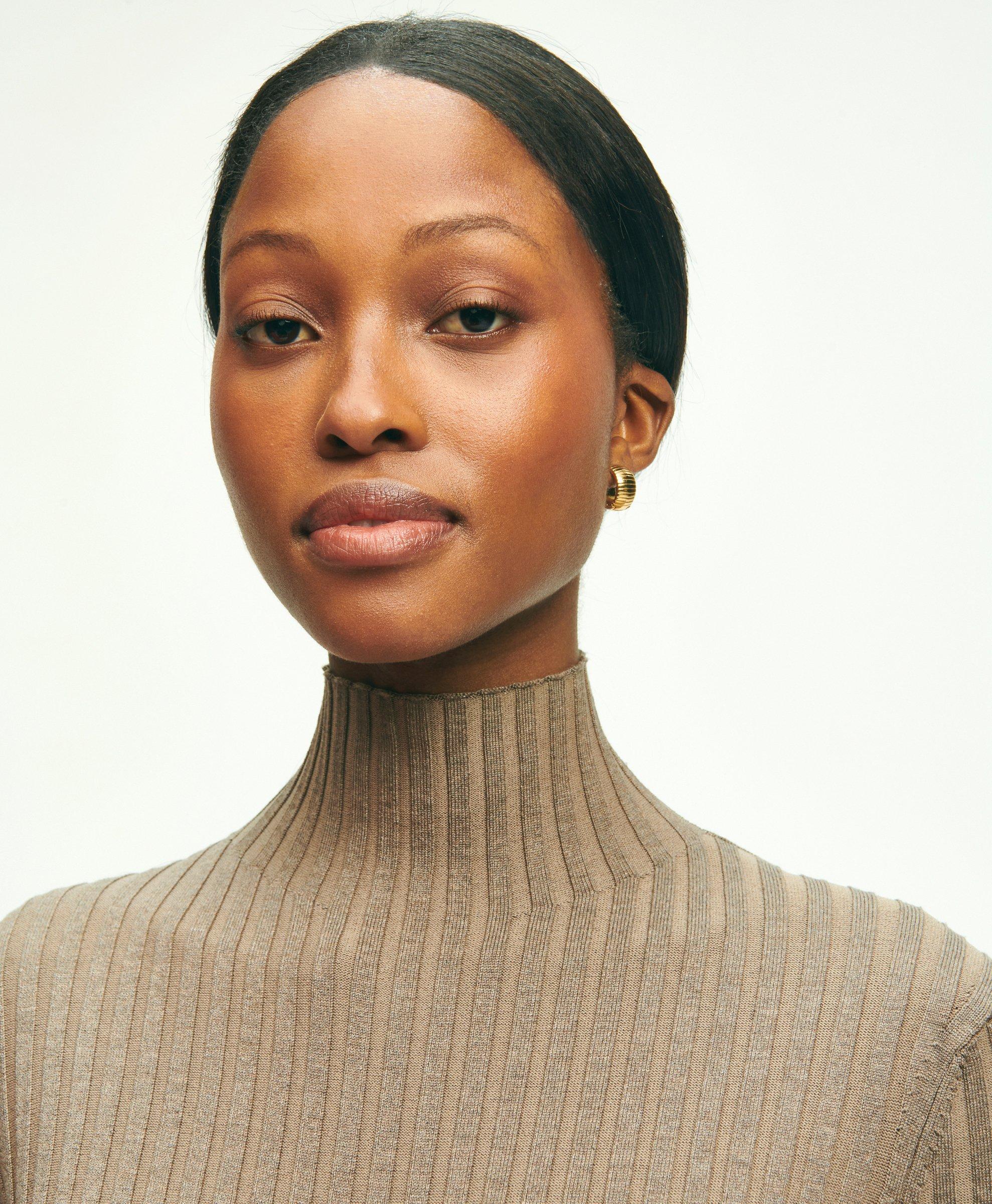 Silk Blend Mock Neck Ribbed Sweater Very well made.