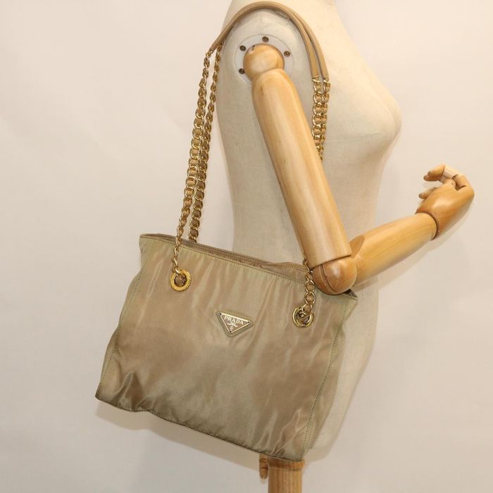 Prada PRADA Chain Shoulder Bag Nylon Beige Auth bs8098 Grailed Very well made.