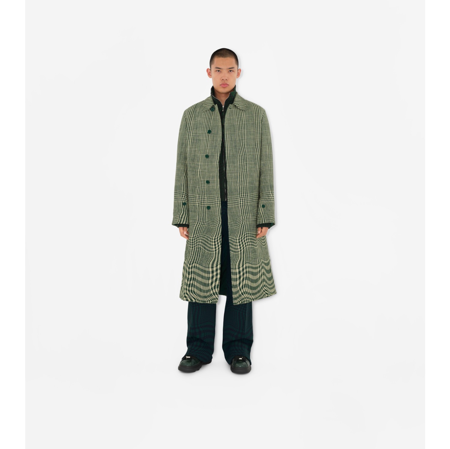 Long Warped Houndstooth Silk Blend Car Coat in Ivy Men Burberry Official Very well made.