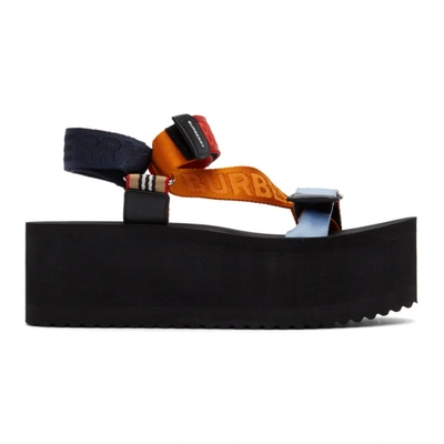 Burberry Patterson Colorblock Logo Flatform Sport Sandals In Very well made.