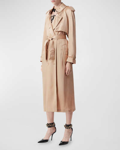 Burberry Pedley Ekd Jacquard Belted Silk Trench Coat In Soft Fawn Very well made.