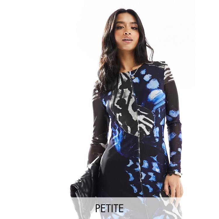 Vero Moda Petite long sleeved lettuce edge mesh maxi dress in blue abstract butterfly print Very well made.