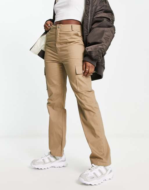 In The Style high waist straight leg cargo trousers in camel Very well made.
