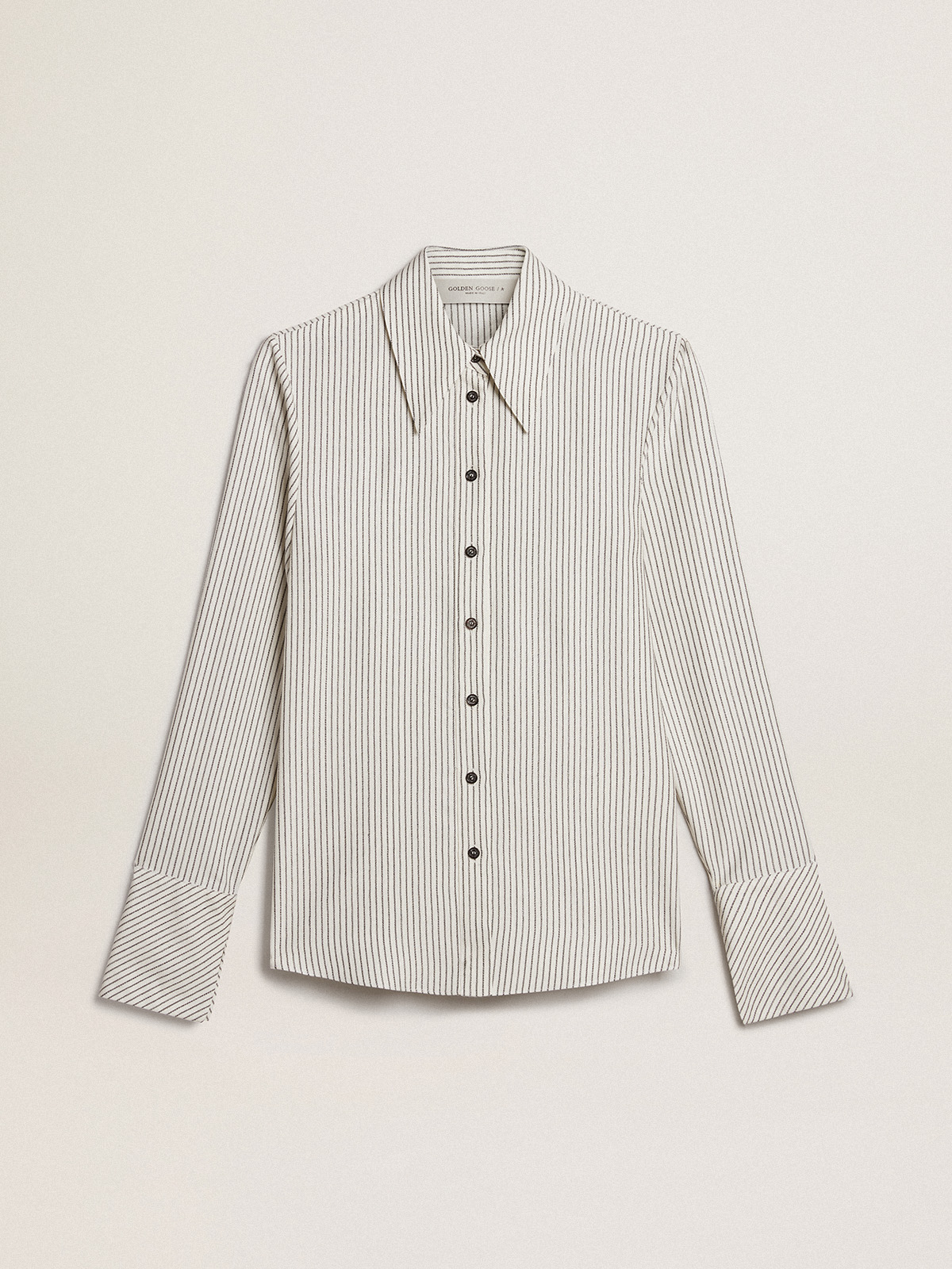 Camicia bianca da donna in viscosa con motivo a righe sottili nere Very well made.