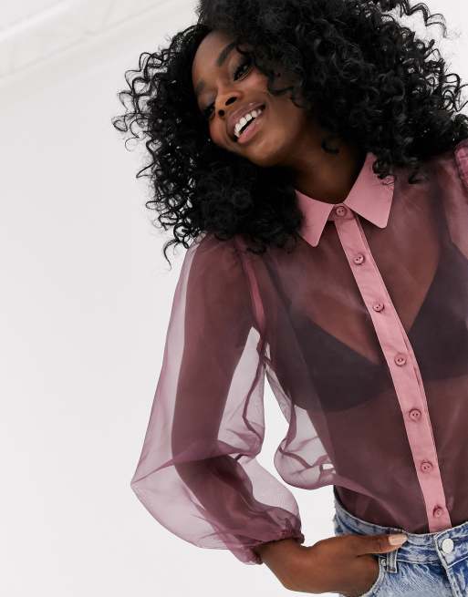New Look Blusa in organza viola con maniche lunghe a sbuffo Very well made.