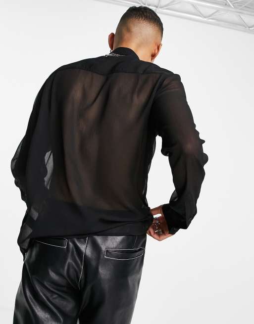 ASOS DESIGN Camicia nera trasparente con fiocco morbido vestibilit classica Very well made.