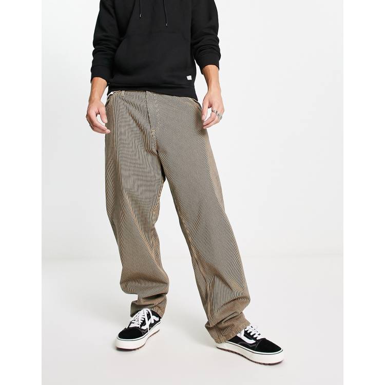 Carhartt WIP single knee hickory stripe straight leg trousers in brown Very well made.