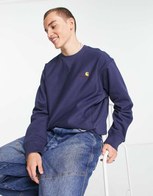 Carhartt WIP american script loose fit sweatshirt in navy Very well made.