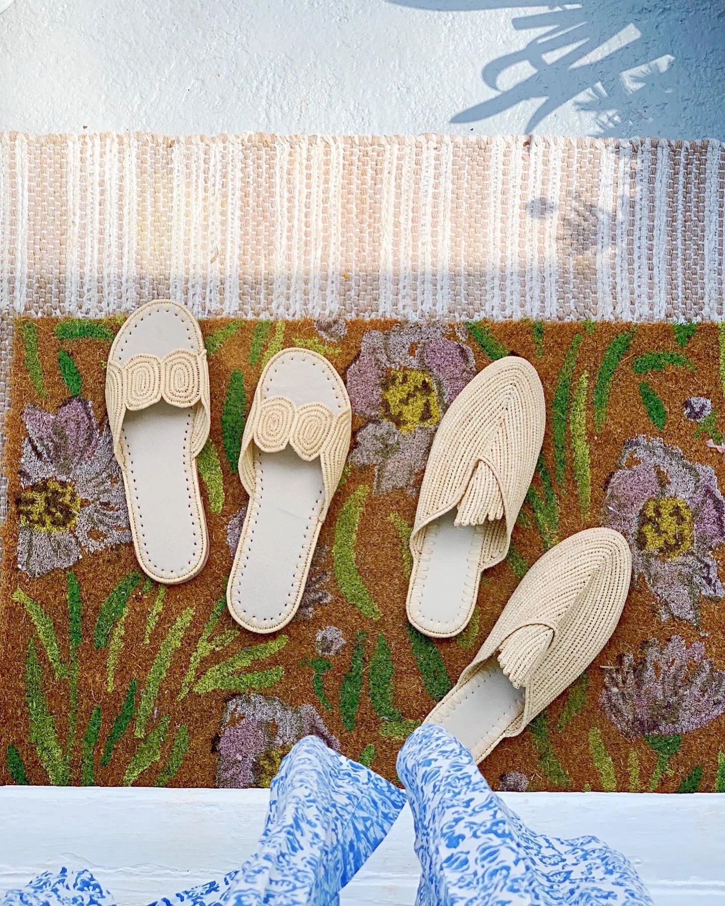 Naima Woven Raffia Slide Sandals In Beige Very well made.