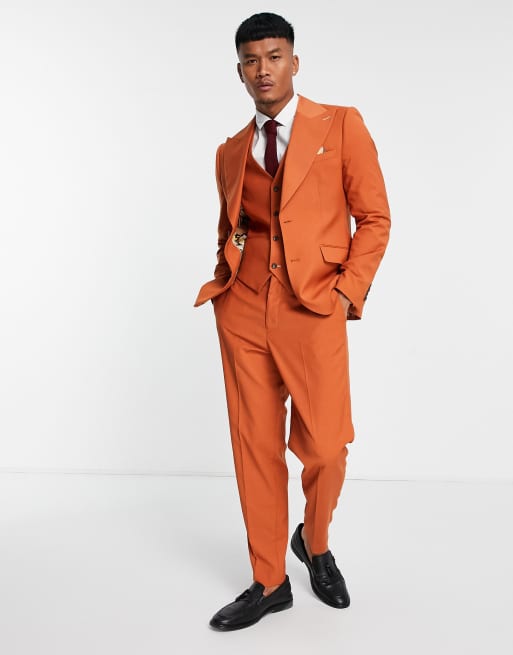 Harry Brown wedding cropped carrot fit suit trousers in rust Very well made.