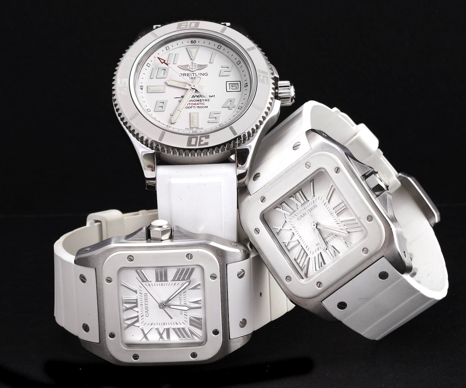 Cartier Santos 100 Midsize White Rubber W20129U2 Discontinued Very well made.