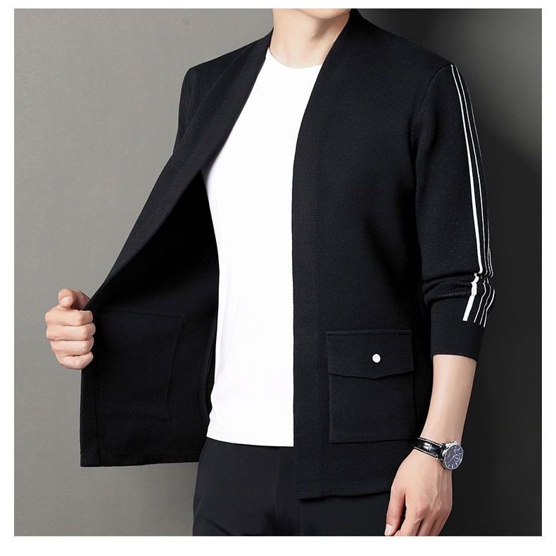 Men Long Sleeve Jacket Suit Formal Jacket In Knitted Fabric Cardigan Blazer Fashion Sweater Casual Very well made.