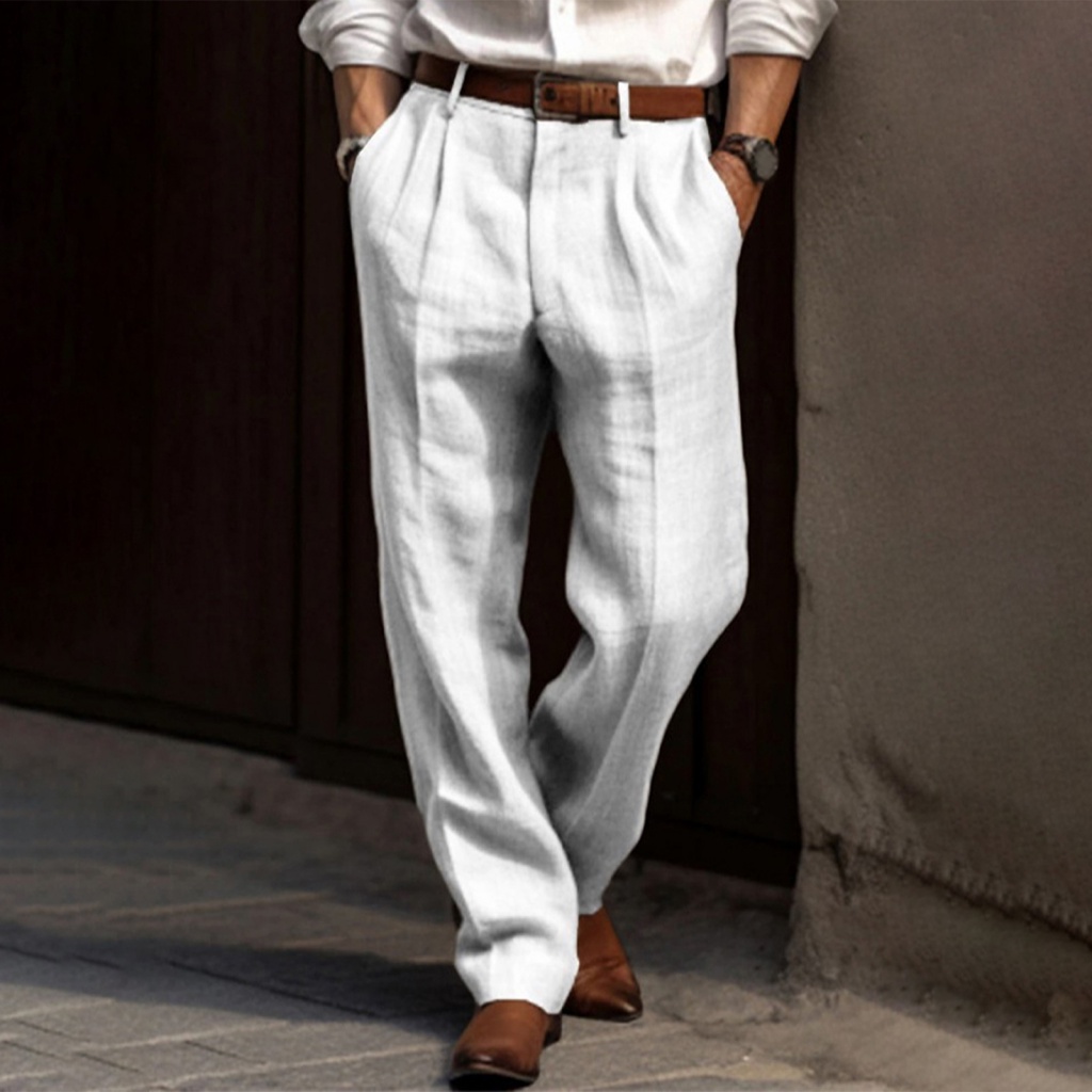 amidoa Men Solid Casual Elastic Waistband Pocket Cotton Linen Panel Trousers Pants Standard and Big Tall Very well made.