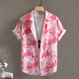 Summer Shirt Men s Clothing Short sleeve Pink Firebird Print Casual Shirts For Men Blouse 2023 New Very well made.