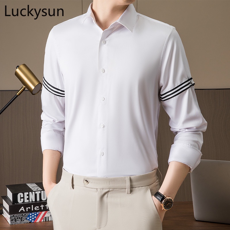 Korean Long Sleeve Shirt Men Casual Gray White Work Office Tops Very well made.
