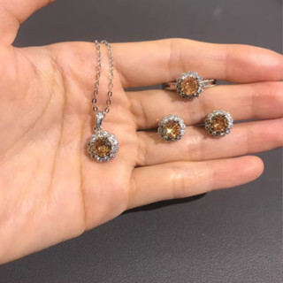 1 carat ring necklace 1 carat earrings AU750 champagne Moissanite Very well made.