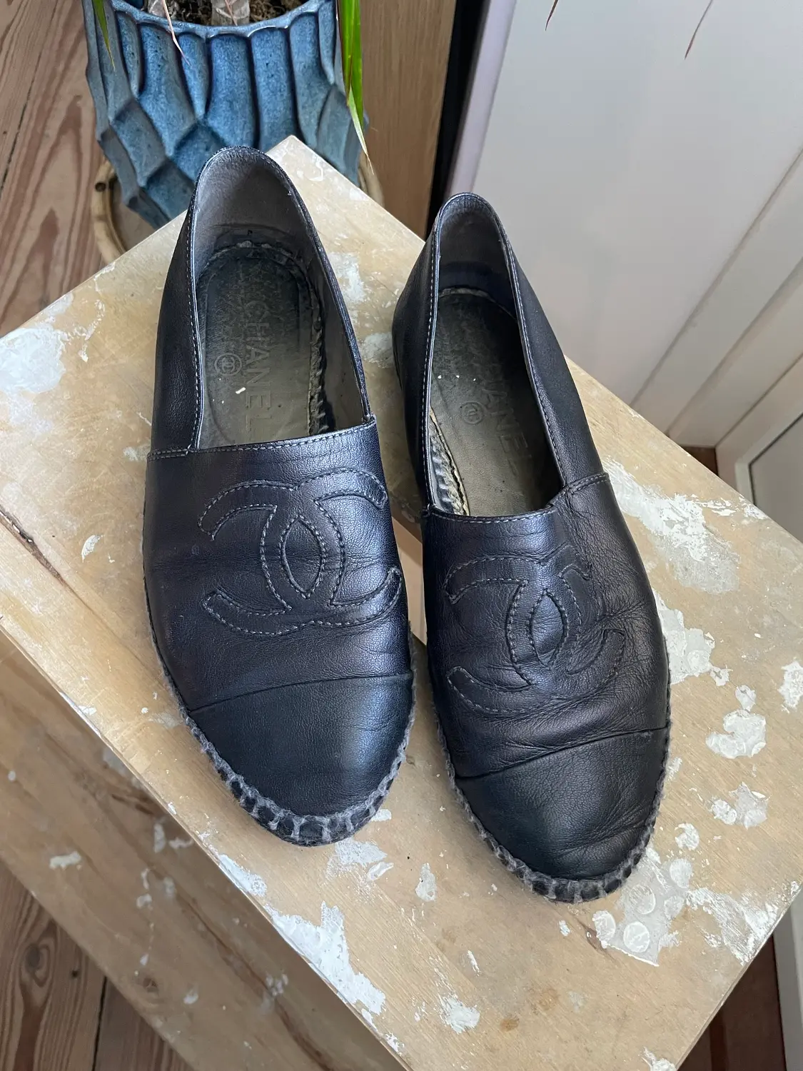 Leather flats Chanel Black size 38.5 EU in Leather 34993268 Very well made.