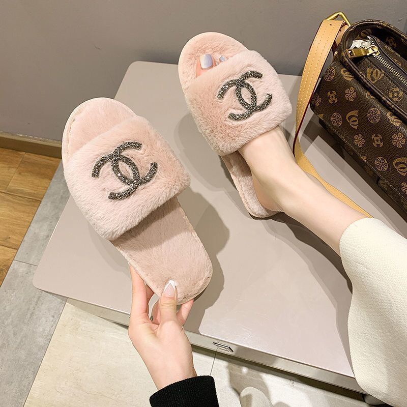 Furry Slides Rhinestones Women Slippers Fur Flip Flops Fur Very well made.